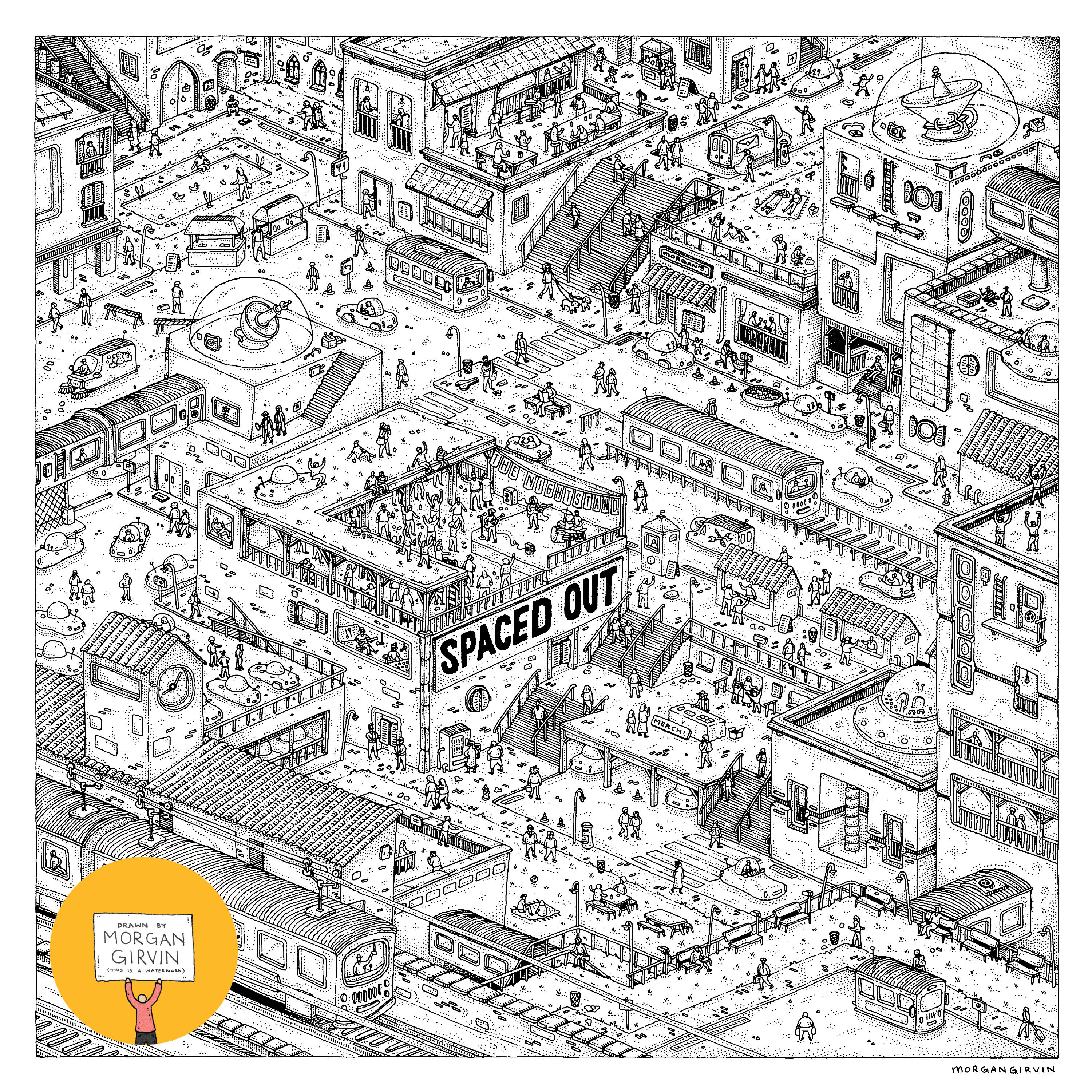 The Nightstand were really open with what it was they wanted me to draw, and there weren’t really too many prerequisites for what the artwork had to be. They had a colour palette in mind, they knew they wanted it to be something along the lines of a Western-esque (re: cowboys, not the hemisphere) space colony, and most importantly they wanted it to be isometric and detailed. Lovely stuff!