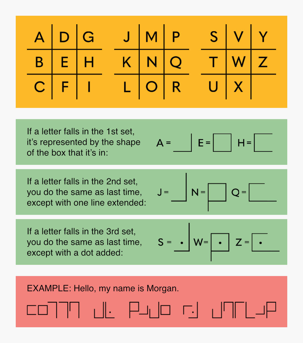 One of the details I enjoyed revisiting/including in the work was the use of a standard pig-pen cipher throughout the drawing. All the signage/billboards/adverts that feature in the piece are all translatable, so if you can read the cipher, or if you have the curiousity to translate it, then you’ll be able to read what they all say!